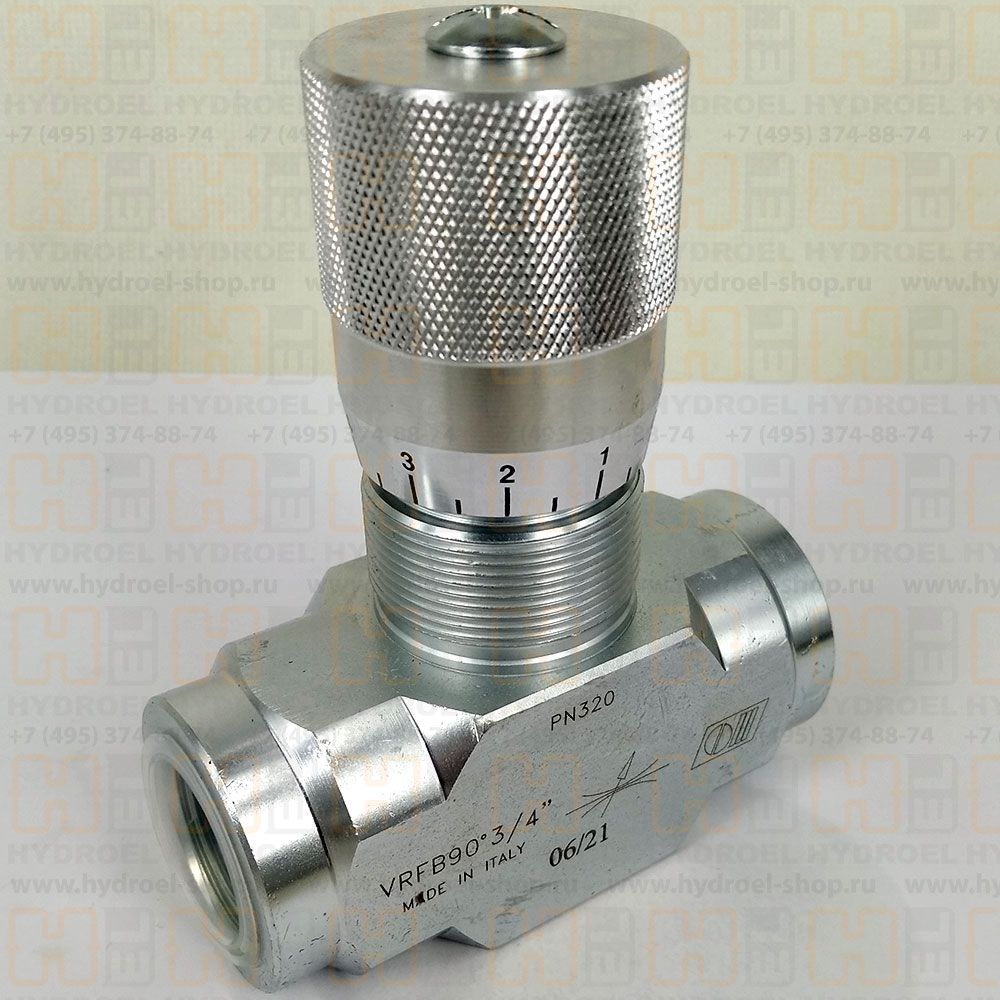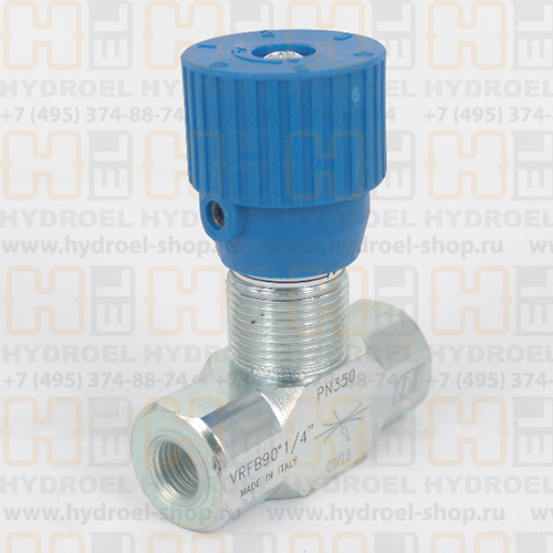 Дроссель VRFB 90° 3/4" предназначен для регулирования потока рабочей жидкости. Дроссель оснащен удобной пластиковой вращающейся рукояткой. Удобен для применений, где требуется постоянная перенастройка расхода в процессе работы.Дроссель VRFB 90° 3/4" не компенсирован по давлению, это означает, что при постоянной настройке дросселя расход, проходящий через него, будет зависеть от вязкости рабочей жидкости. Компенсированные по давлению дроссели - см. раздел