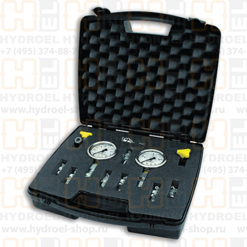 Диагностический набор для измерения давления КР1 предназначен для экспресс-контроля давления во всех магистралях гидравлических систем мобильных машин и промышленных установок. Набор укомплектован двумя радиальными манометрами D63 G1/4"с диапазоном 0-100 бар, 0-400 бар, соответственно, и микрошлангом 600мм с резьбой G1/4".